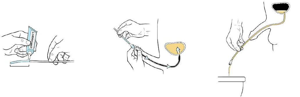 Self-catheterization simply means inserting a clean, thin, flexible tube (catheter) through the penis and into the bladder to empty urine. This helps you empty your bladder when it won’t empty by itself or empty all the way. You were shown in the hospital how to do self-catheterization. The steps below should help you remember how to do it properly.